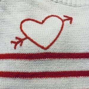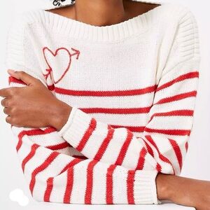 Valentine Day Heart Boatneck Sweater Red and White striped with Embroidered heart and arrow design by Loft SIZE S. Originally $69.