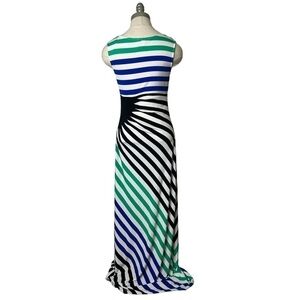 2/$30 London Times Sleeveless Stripe Long Stretch Maxi Dress Slimming Panel