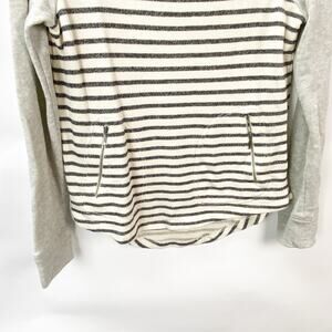 Lou & Grey Medium White Gray Striped Pullover Sweatshirt Sweater Long Sleeve Scoop Neck Terry Fall Winter