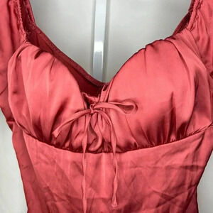 Love tree Size Medium Satin Like Body Suit Sweetheart Dusty Red