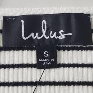 Stay effortlessly stylish with this Lulus White Bodysuit with Black Stripes in Size S. Featuring a flattering fitted silhouette, soft stretch fabric, and a classic striped pattern, this versatile bodysuit is perfect for layering under jeans, skirts, or shorts for a polished casual look.