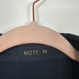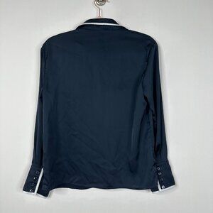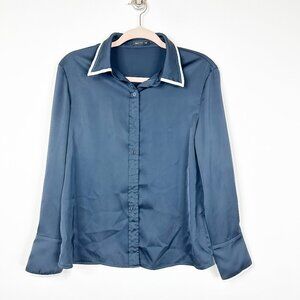 2/$30 MOTF Satin Contrasted Button-Down Shirt Deep Blue XS #BAG12