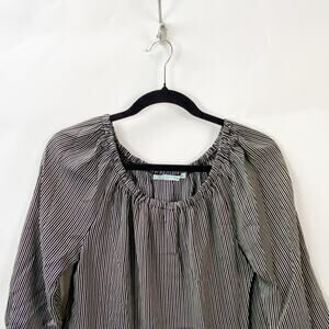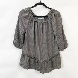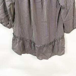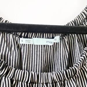 2/$30 Maurices Small Womens Black/White Striped 3/4 Puff Sleeve Peplum Hem Top