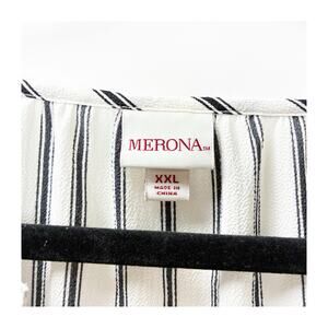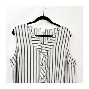 2/$30 Merona Plus Sleeveless Ruffle‑Front Blouse 2XL Women Black‑Ivory Striped