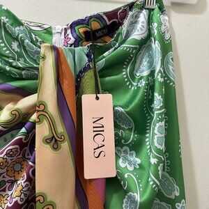 2/$30 Micas Maxi Skirt Size M Boho Resortwear Retro 70s Draped Ruched Colorful