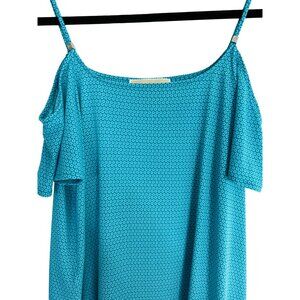In the heart of summer, this Michael Michael Kors dress flows effortlessly, like a gentle ocean breeze. The turquoise hue, adorned with delicate patterns, exudes a sense of tranquil elegance. Perfect for those sunny days when you just want to feel light and free, this dress will be your go-to for effortless style. Michael Kors dress, turquoise dress, women's summer dress, cold shoulder dress, patterned dress, loose fit dress, spaghetti strap dress, women's fashion, designer dress, summer fashion, casual dress, beach dress, lightweight dress