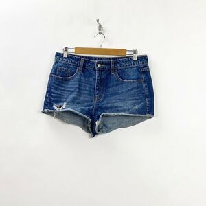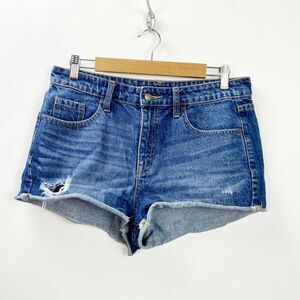 Mossimo 8/29 Womens Medium Wash Distressed Denim High Rise Short Short