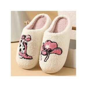 Cozy Warm Soft Fluffy Furry Fuzzy Plush Slippers Slides Sherpa Holiday Western Cowgirl Boot Cowboy Hat