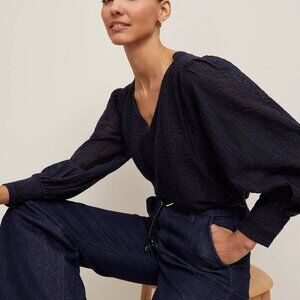 2/$30 NWT Ann Taylor Embroidered V-Neck Popover Night Sky Small #A0441 TRB3