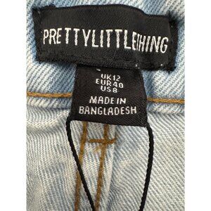 These NWT stylish knee-ripped mom jeans, size "8" by Pretty Little Thing. These light wash jeans are perfect for any day-to-night plans. Featuring a light wash denim with a knee rip and a mom fit. Style with chunky boots and a white crop top to complete the look. Fun, relaxed fit with trendy knee rips, making them a fashionable choice for everyday wear.