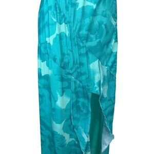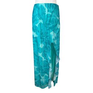 2/$30 NWT Something New Medium Turquoise/Teal Floral Ruffle Maxi Skirt Side Slit