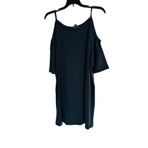 This Topshop casual dress whispers comfort. Crafted from a blend of cotton and polyester, it drapes gracefully while ensuring a fun run errands look. The stylish charcoal blue hue and unique shoulder cutouts make it a chic addition to any wardrobe. Topshop dress, cold shoulder dress, black dress, women's fashion, size 8 cold shoulder dress, mini dress, dark teal, deep blue, solid color, jersey knit, soft cotton blend, smooth fabric, relaxed fit, straight silhouette, casual chic, modern minimalist, comfortable everyday wear, summer outfit, spring casual, resort style, easygoing, trendy, stylish, versatile, effortless, fashionable, lightweight, breezy, feminine, dress, cotton dress, polyester dress, casual dress, summer dress, elegant dress, charcoal,