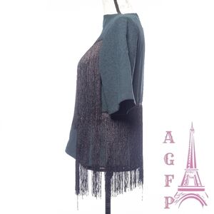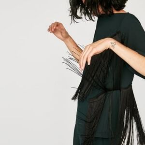 💖 2/$30 NWT Zara boho Fringe boxy dark green blouse top art to wear size XS