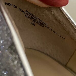Nine West silver glitter sparkle heels. Open toe. Formal or casual wear. Size 9. Excellent Worn Condition!