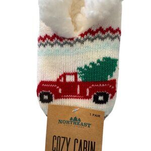 NWT Youth-sized Northeast Outfitters 2 sets of cozy cabin socks-slippers with a festive red truck design. Aloe-infused for comfort, featuring a snug fit ideal for cold weather.