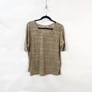Old Navy Small Womens Beige Tan Aztec Print Sheer 3/4 Sleeve Pullover Top