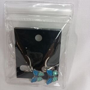 Elegant butterfly earrings featuring vibrant blue and green colors. Perfect for adding a touch of nature-inspired beauty to any outfit.