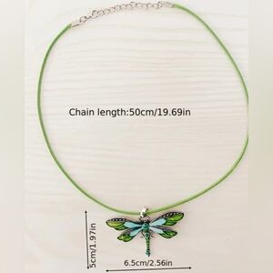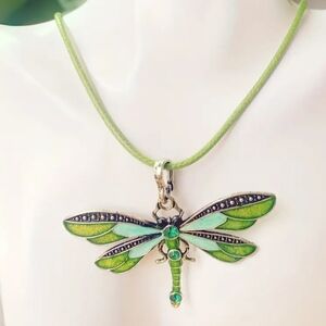 This stunning dragonfly pendant features vibrant green and blue hues, perfect for adding a touch of nature-inspired elegance to any outfit.