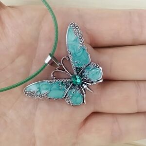 2/30$ Or 3/$35 Y2K Elegant Silver Green Butterfly Pendant Summer Necklace(#0111)