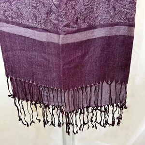 2/$30 Pashmina Style Scarf Shawl Plum Purple Wrap Cover Up OS Fringe Paisley