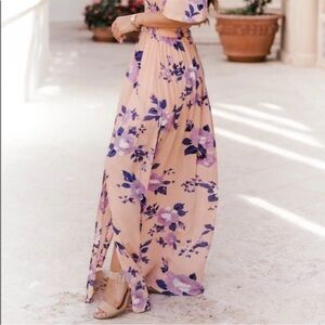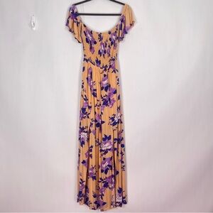 2/$30 Pink Lily Floral Maxi Dress Sz Small Tan Nude Purple