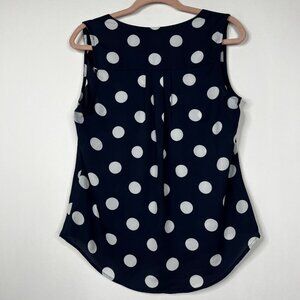 2/$30 Pixley Polkadot Sleeveless Blouse Split Neck Navy Small #8993