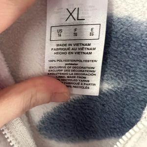 This Adidas fleece pullover is cozy, colorful, and fun. Features a bright floral allover print on a soft white base, a quarter zip neckline, front pockets, and a relaxed loose fit. Warm and lightweight, perfect for layering. Gently worn with no major flaws. Girls Size XL (16).