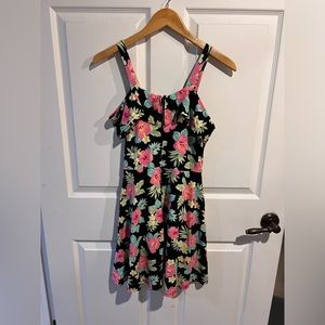 This Children's Place floral dress is bright, fun, and perfect for sunny days. Features an allover tropical floral print, cold shoulder design with adjustable straps, and a swingy A-line silhouette. Lightweight and soft for warm weather. Gently worn with no major flaws. Girls Size XL (14).