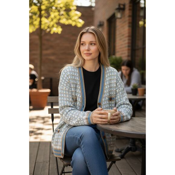 SHEIN Cardigan Size XL Blue Cream Plaid Button Up Soft Thick