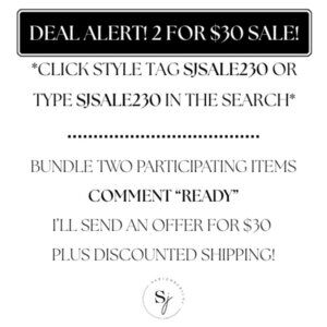 Check out this awesome sale! Bundle this item with another 2/$30 item in my closet, then comment “READY” and I’ll send a $30 offer with discounted shipping!