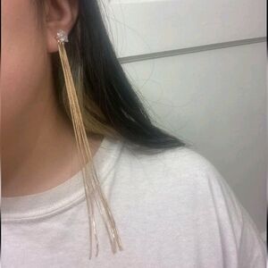 Long tassel gold plated shooting stars rhinestone sparkle boho dangle Statement Elegant boho Earrings, new no tags