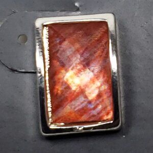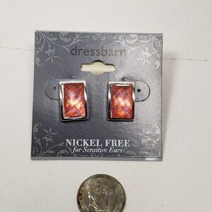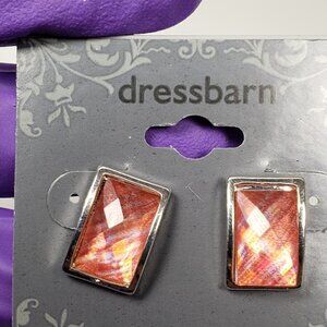 Complete your look with our Stunning Silver Tone Teardrop Earrings featuring Salmon Colored Rectangle Shape Stones. These earrings add a pop of color to any outfit. NWT