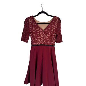 2/$30 Slate & Willow Size 4 Burgundy Lace Top Fit & Flare Mini Dress