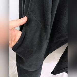 Elegant lightweight fleece black draped cardigan with a chic design.