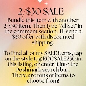 To find all of my SALE items, tap on the style tag "RCCSALE230" in this listing, or enter it into the Poshmark search bar.