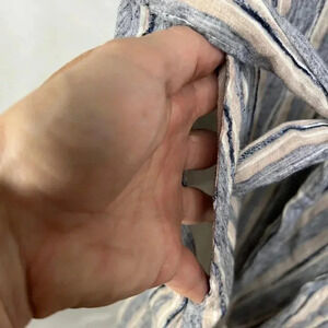 Susina Size Small Faux Wrap Sundress Dress Short Sleeve Cotton Striped Cream Blue White