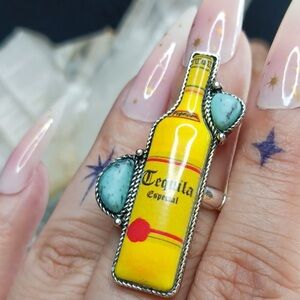 2/$30🌵 Tequila Especial Silver Turquoise Stone Adjustable Alcohol Southwestern