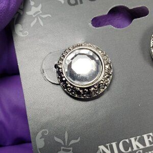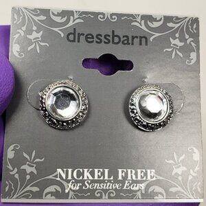 2/$30 Textured Silver Tone Crystal Stud Earrings - Women's Fashion Jewelry