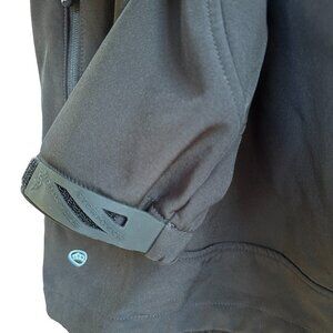 - Adjustable wrist cuffs and adjustable pull cord at hem