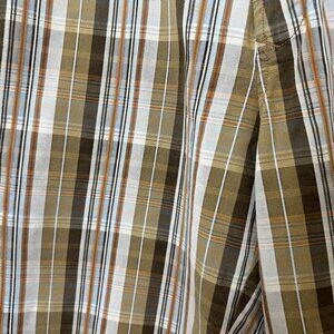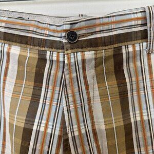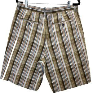 Tommy Bahama Paradise Nation Silk Cotton Shorts Size 35 Waist Multicolor Brown Orange Blue Tan Plaid