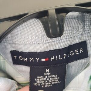 2/$30 Tommy Hilfiger Green Plaid Short Sleeve Button Up Shirt 100% Cotton Med