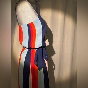 Tommy Hilfiger dress, striped dress, rainbow dress, summer sheath dress, colorful tank dress, belted midi dress, XS Tommy dress, multicolor stripe dress, vacation dress, casual summer dress