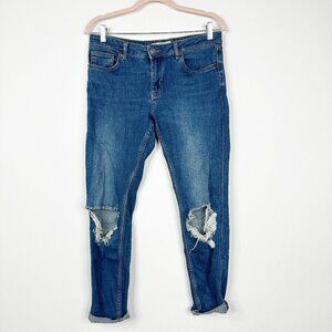 2/$30 Topshop Moto Lucas Jeans Ripped Boyfriend Mid Rise Slim Mid Blue W28 #9280