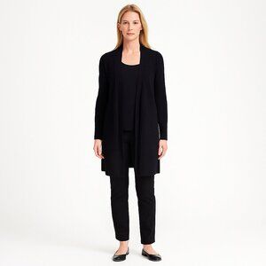 2/$30 Verve Ami Ribbed Knit Open Cardigan Black Medium #A0439 TRB3