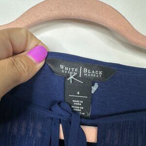 2/$30 White House Black Market Long Sleeve Tie Neck Blouse Endless Blue 4 #A0043