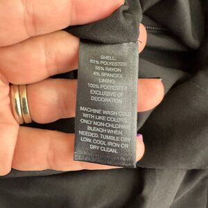 pencil skirt, midi skirt, black, ebony, jet black, solid, plain, cotton blend, structured fabric, fitted, tailored, sleek silhouette, office wear, professional attire, formal occasion, business casual, timeless, versatile, minimalist, elegant, sophisticated, classic, chic, polished, refined, contemporary