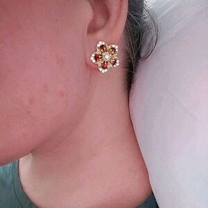 💖 2/$30 Womens boho Floral Rhinestone red gold elegant Stud cocktail Earrings