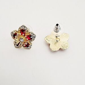 Womens Red & Gold Rhinestones floral flower formal stud small earrings, New with no tags