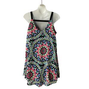 1980s Y2K Kaleidoscope Print Tank Dress with vibrant colorful geometric pattern from Xhilaration.