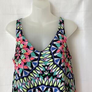 2/$30 Xhilaration 1980s Tank Dress Women Small Blue Pink Geo Kaleidoscope Hippie